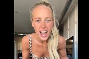 把大伙当家人!索菲-坎宁安带着护具穿着比基尼 术后几周就开跳