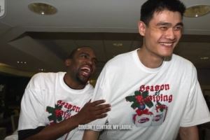 谈到姚明,莫布里说:“姚明会说,他很乐意我坐在旁边,尤其是当我就坐在他身边的时候,我太喜欢他的幽默感了。所以,比如我们在参加宴会、活动或者其他类似场合时,他会讲个笑话,或者拿某个人开个小玩笑,那些话对我来说实在太好笑了,我根本忍不住,总会直接笑喷。我就完全不顾形象地大笑。然后你看他反应——我就得捶他几下,又搂又抱地表达情绪。”