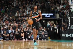 此役马刺后卫福克斯出场33分钟22投10中,三分7中4拿到24分4篮板10助攻3抢断1盖帽,有4失误,正负值+1。