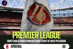 23-24赛季以来英超角球进球最多:枪手36球断崖领先,蓝军21球第2